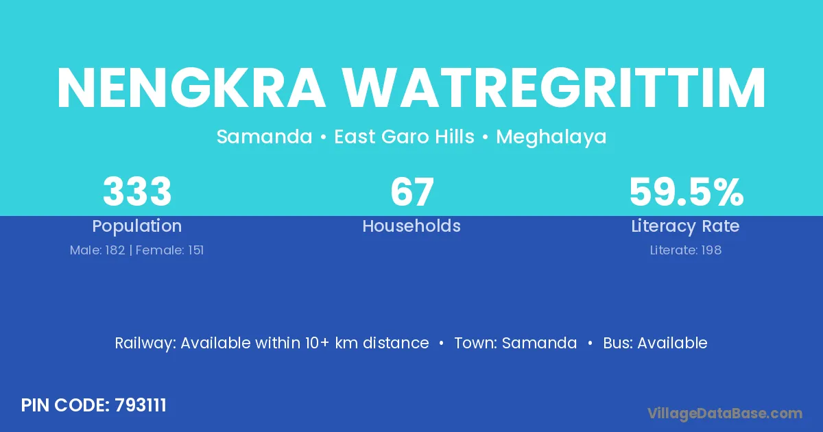 Nengkra Watregrittim village has a total population of 333 people, of which 182 are males and 151 are females.