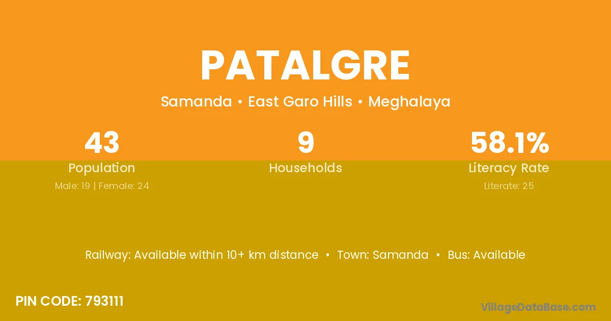 Patalgre village has a total population of 43 people, of which 19 are males and 24 are females.