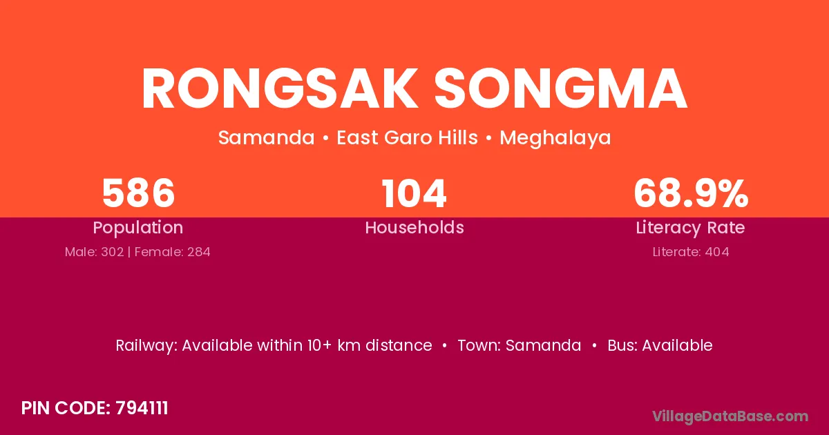 Samanda is the nearest town to Rongsak Songma village for major economic activities