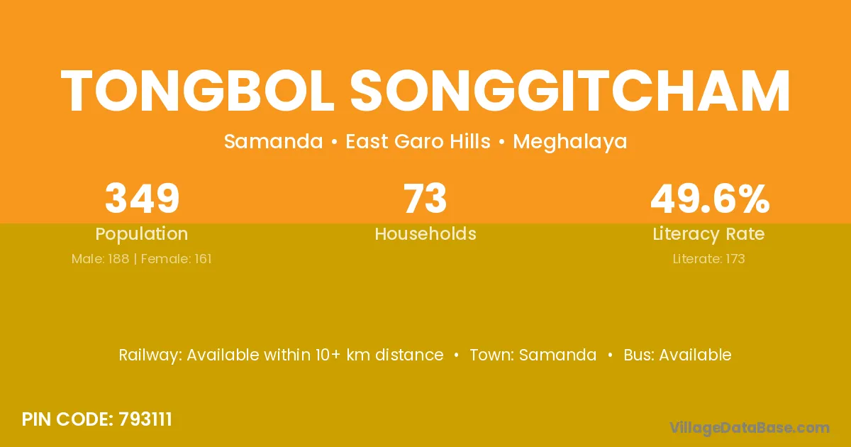 Tongbol Songgitcham village is located in the Samanda Subdivision of the East Garo Hills district in Meghalaya .