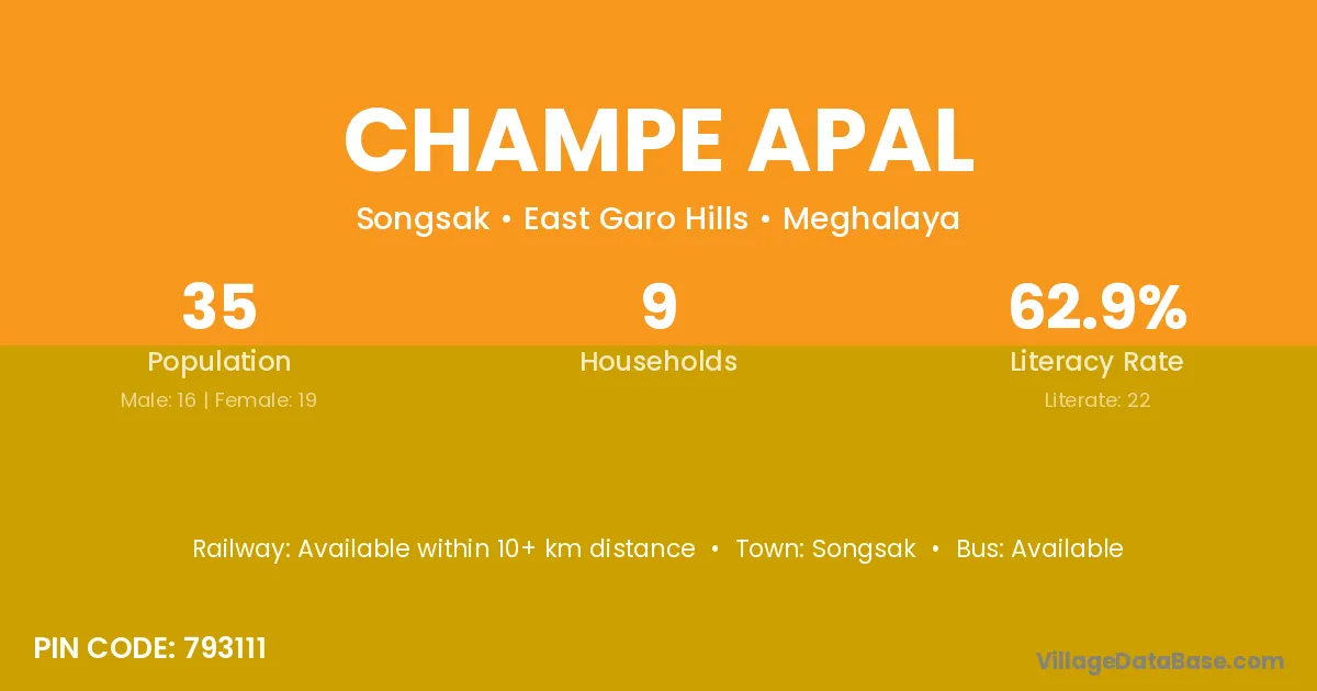 According to Census 2011 information, the village code of Champe Apal village is 793111.