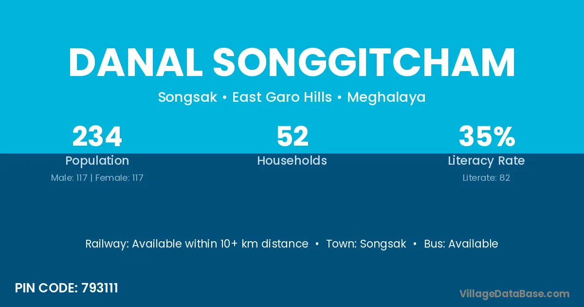 Danal Songgitcham village has a total population of 234 people, of which 117 are males and 117 are females.