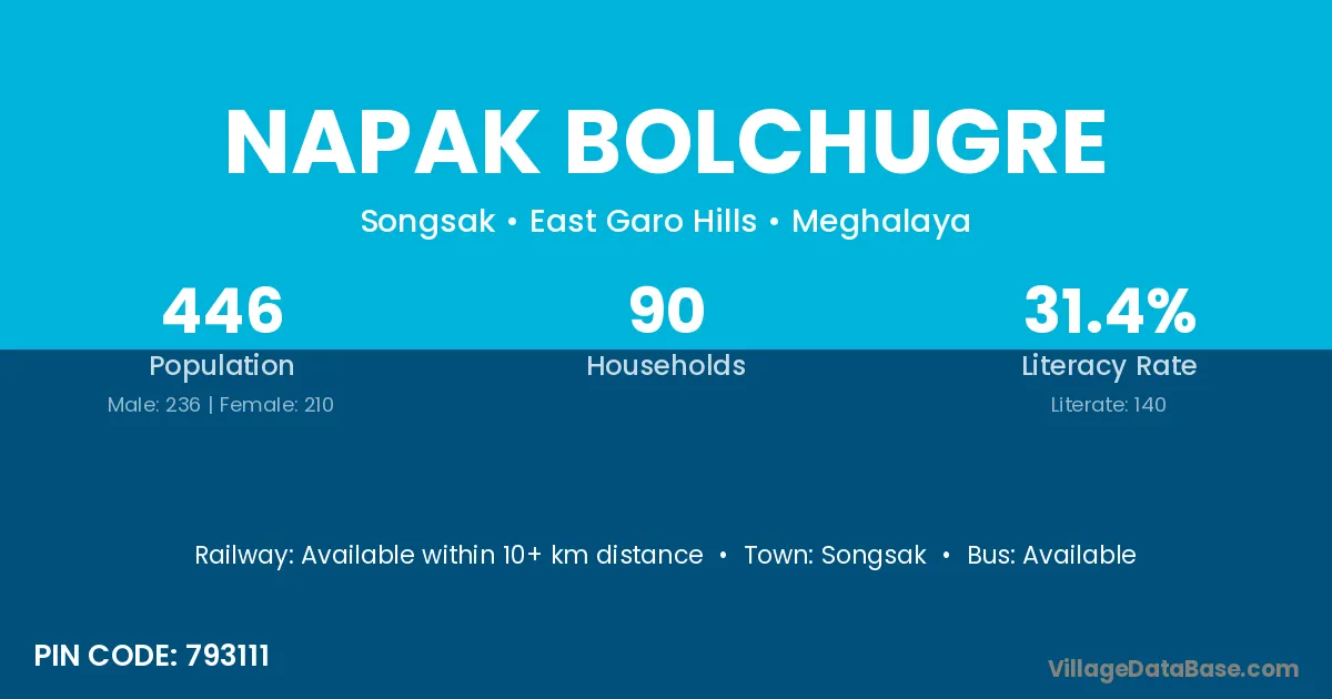 Napak Bolchugre village has a total population of 446 people, of which 236 are males and 210 are females.