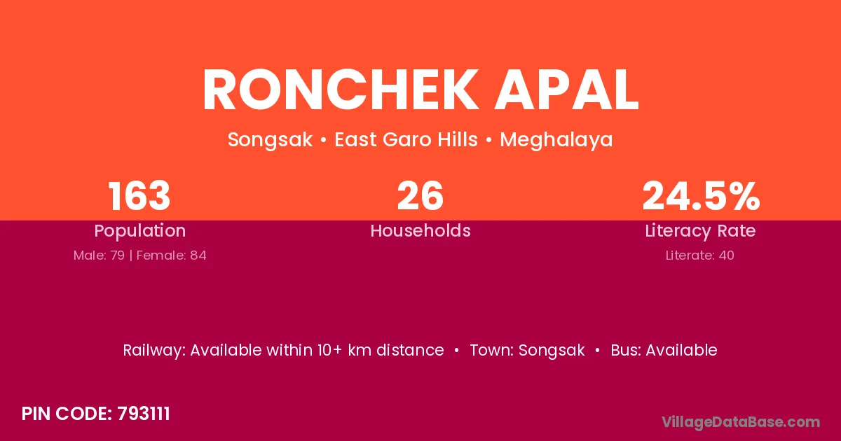 According to Census 2011 information, the village code of Ronchek Apal village is 793111.