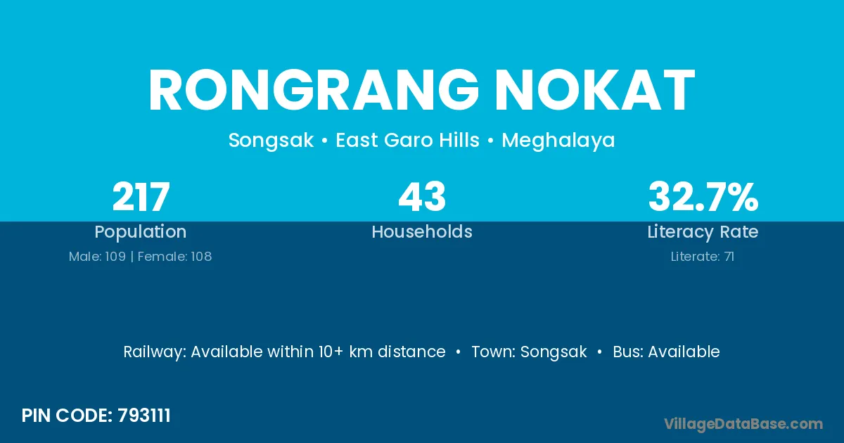 According to Census 2011 information, the village code of Rongrang Nokat village is 793111.