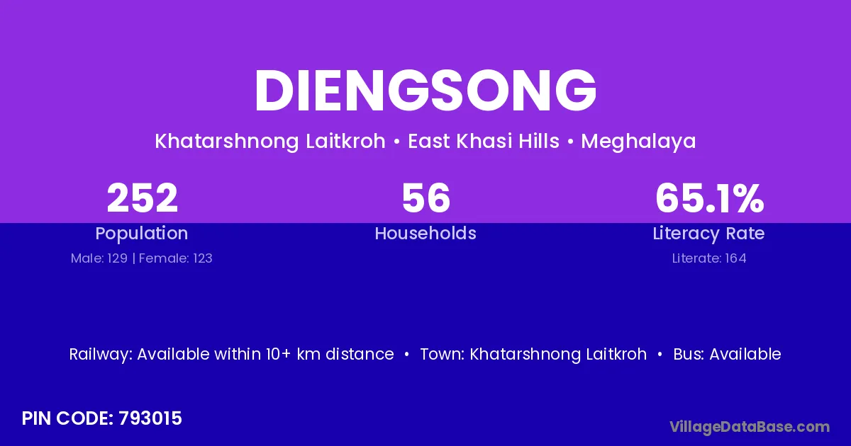 Diengsong village has a total population of 252 people, of which 129 are males and 123 are females.