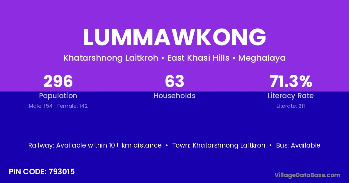 Lummawkong village has a total population of 296 people, of which 154 are males and 142 are females.