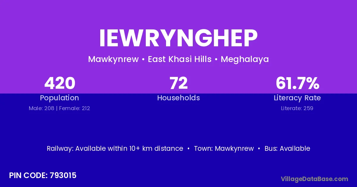 According to Census 2011 information, the village code of Iewrynghep village is 793015.
