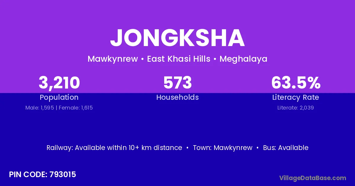Mawkynrew is the nearest town to Jongksha village for major economic activities