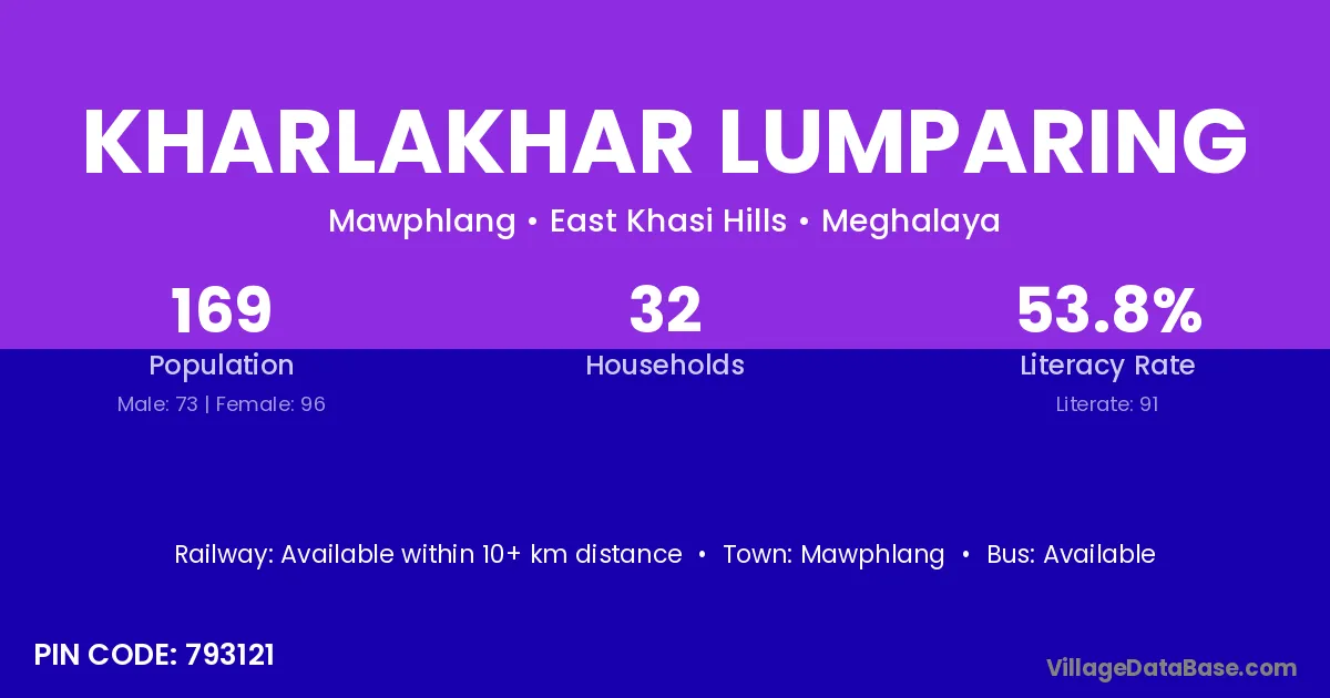 According to Census 2011 information, the village code of Kharlakhar Lumparing village is 793121.