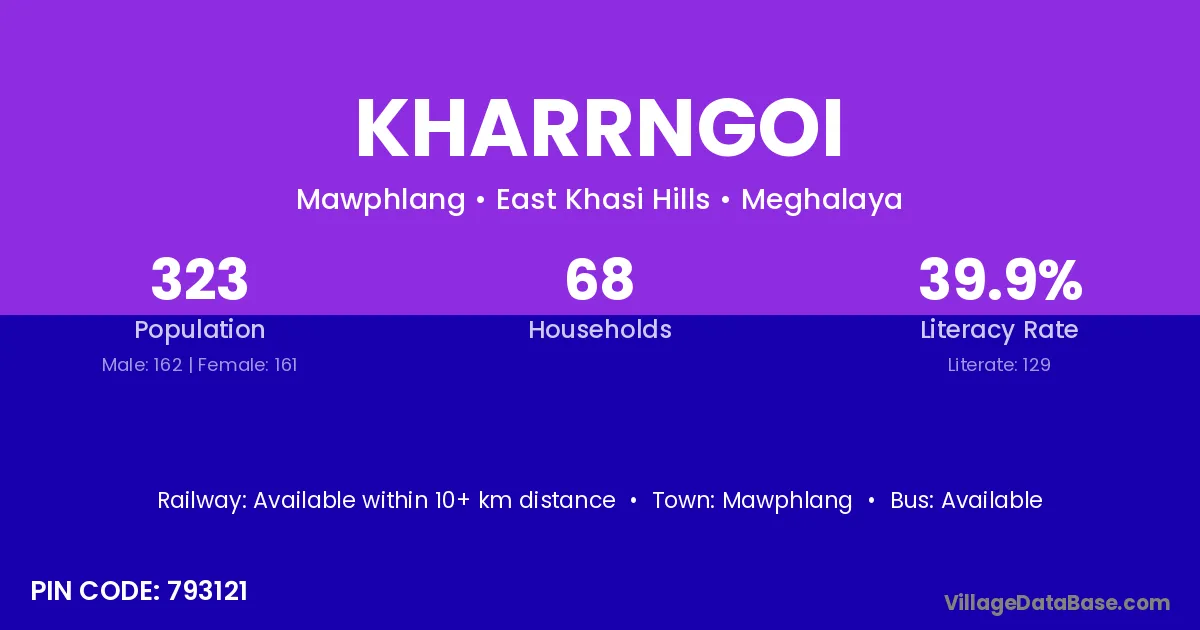 Kharrngoi village has a total population of 323 people, of which 162 are males and 161 are females.