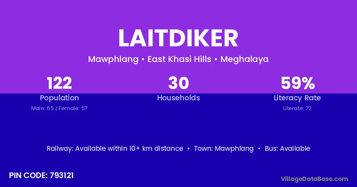 According to Census 2011 information, the village code of Laitdiker village is 793121.