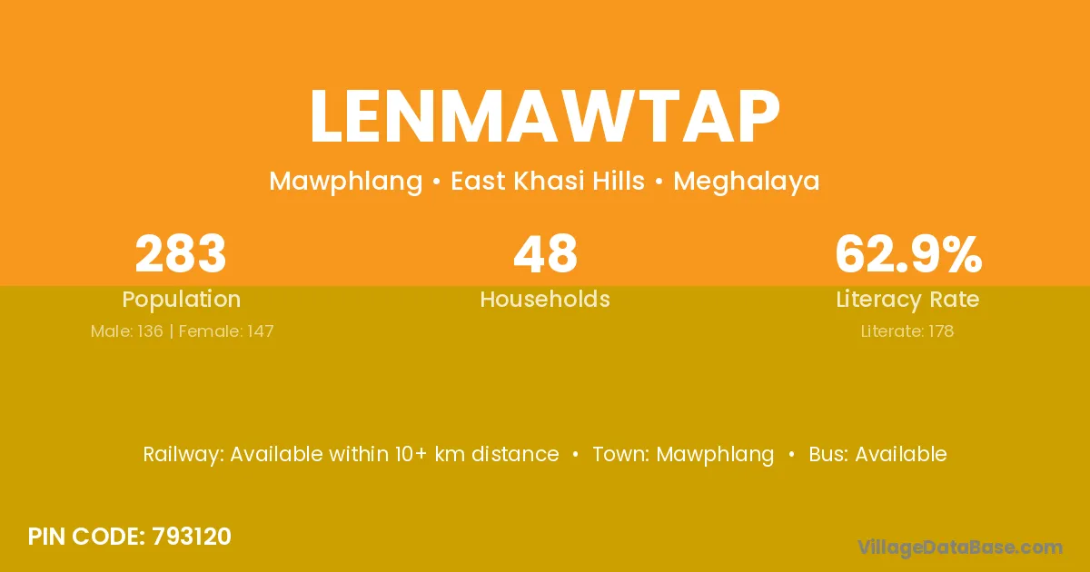 Lenmawtap village has a total population of 283 people, of which 136 are males and 147 are females.