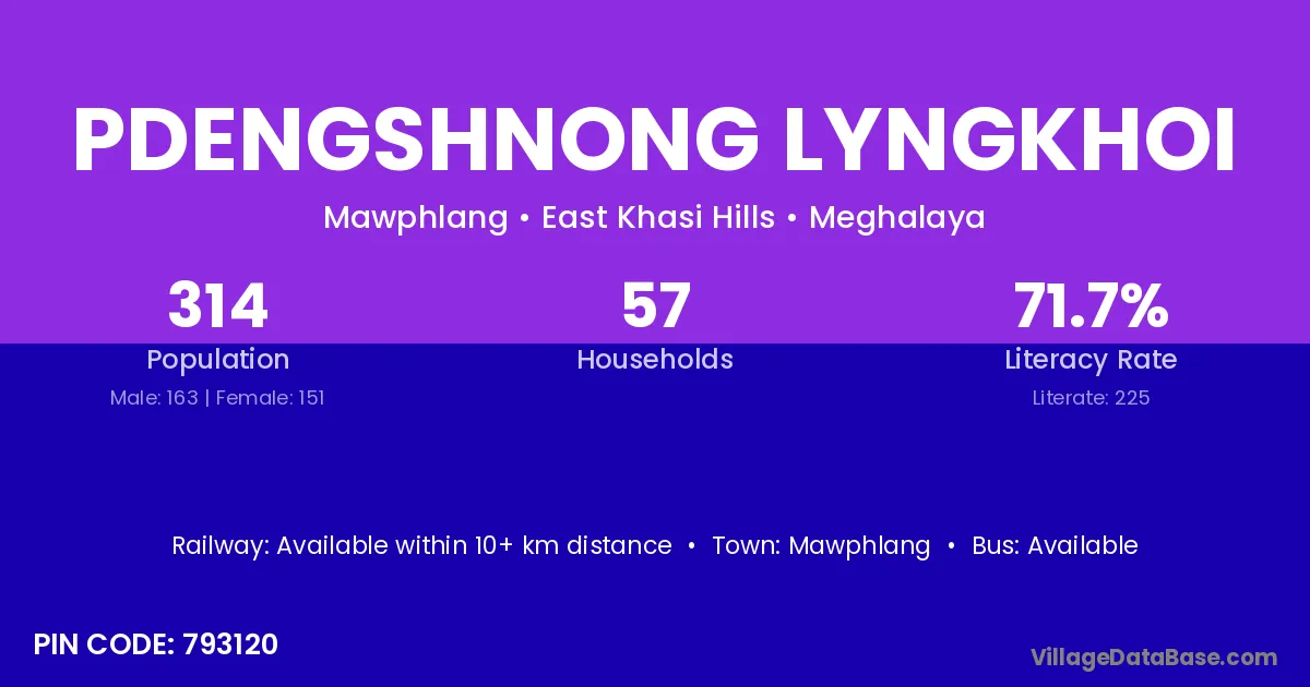 Pdengshnong Lyngkhoi village has a total population of 314 people, of which 163 are males and 151 are females.