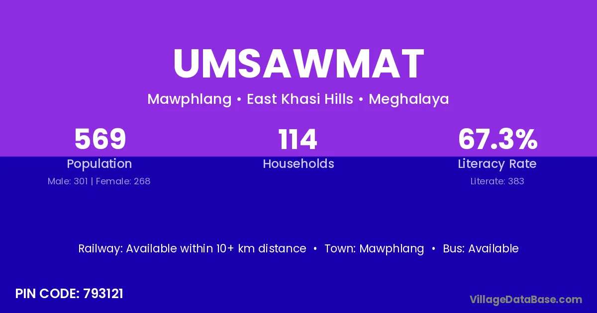 According to Census 2011 information, the village code of Umsawmat village is 793121.