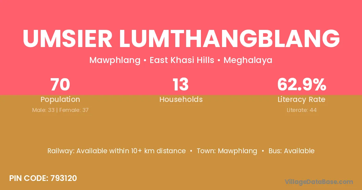Umsier Lumthangblang village has a total population of 70 people, of which 33 are males and 37 are females.