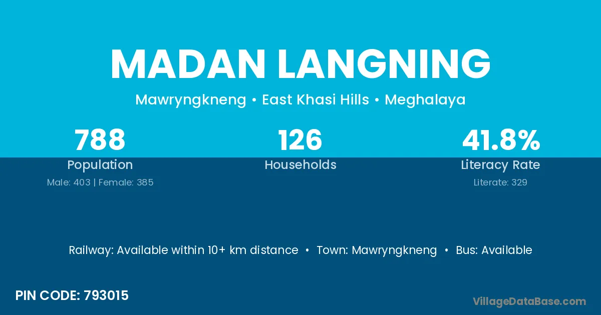 Mawryngkneng is the nearest town to Madan Langning village for major economic activities