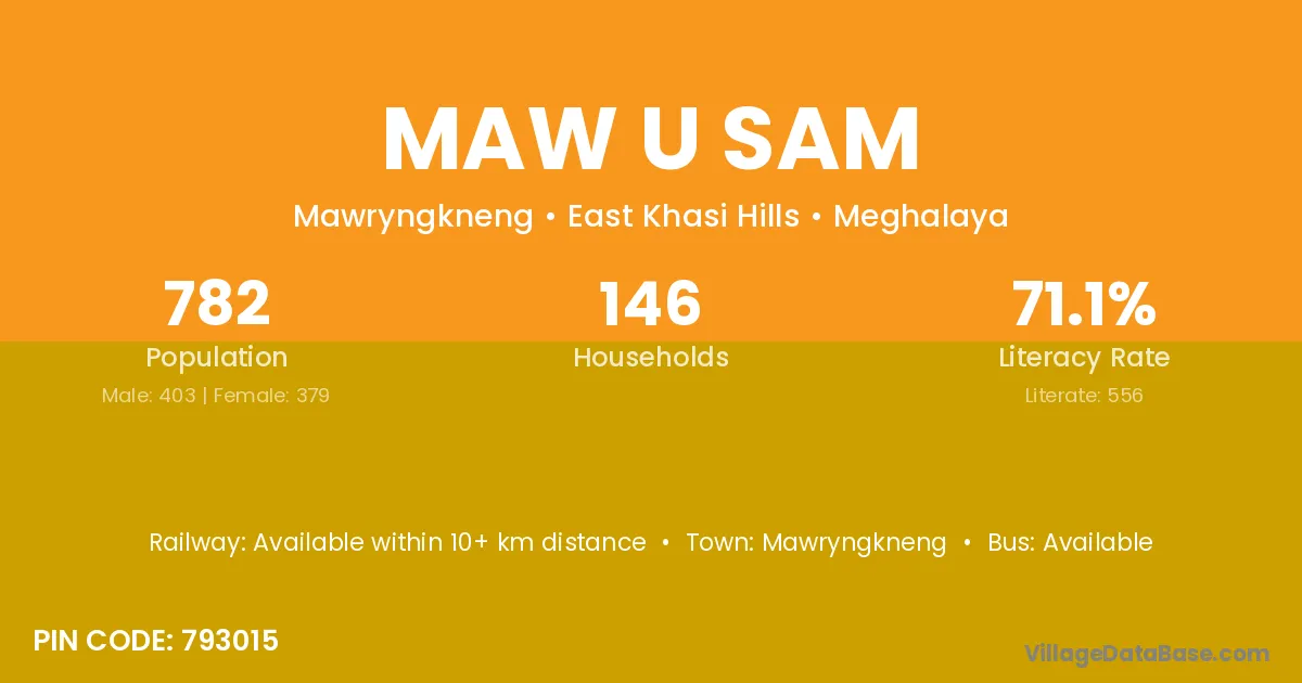 Mawryngkneng is the nearest town to Maw U Sam village for major economic activities