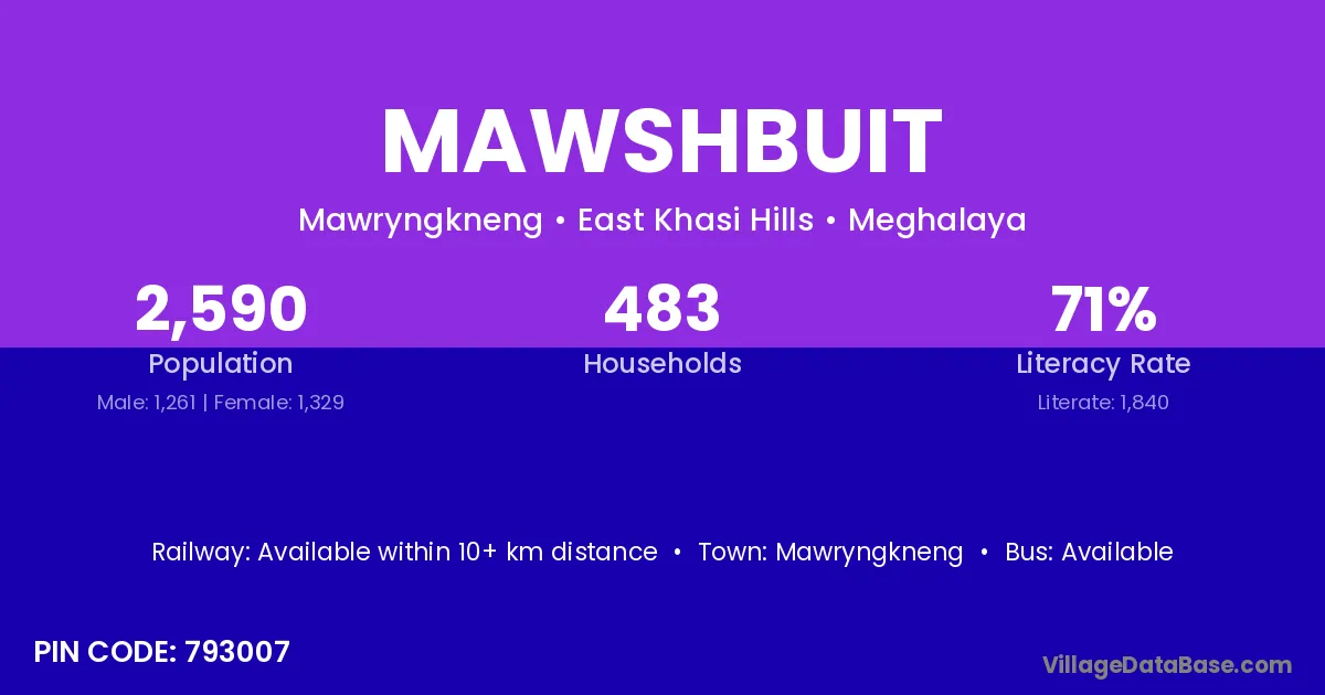 Mawryngkneng is the nearest town to Mawshbuit village for major economic activities