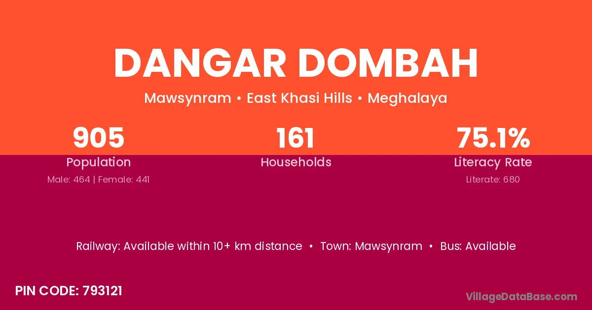 Dangar Dombah village has a total population of 905 people, of which 464 are males and 441 are females.