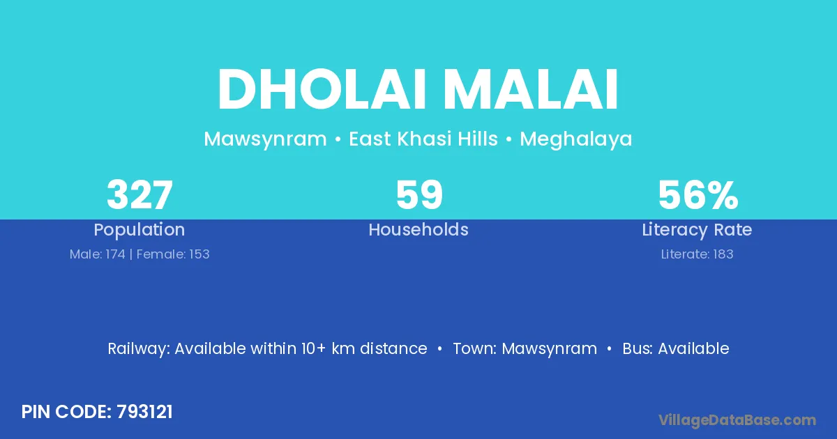 Mawsynram is the nearest town to Dholai Malai village for major economic activities