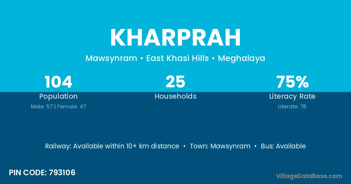 According to Census 2011 information, the village code of Kharprah village is 793106.