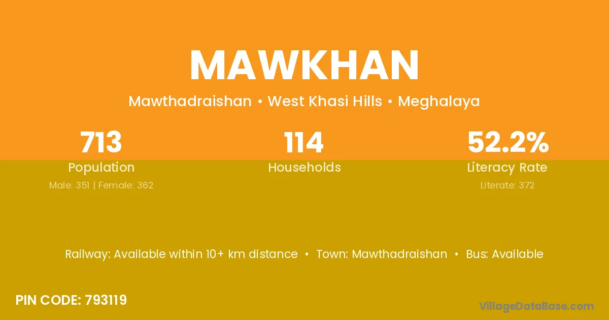 According to Census 2011 information, the village code of Mawkhan village is 793121.