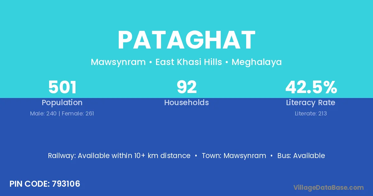 Pataghat village has a total population of 501 people, of which 240 are males and 261 are females.