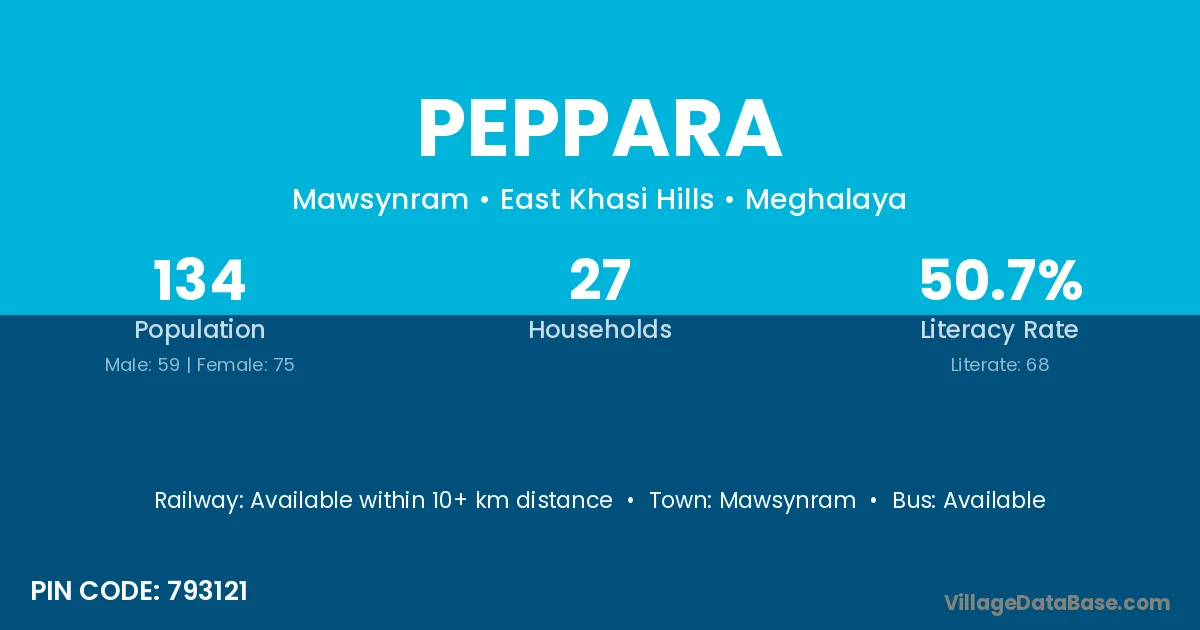 According to Census 2011 information, the village code of Peppara village is 793121.