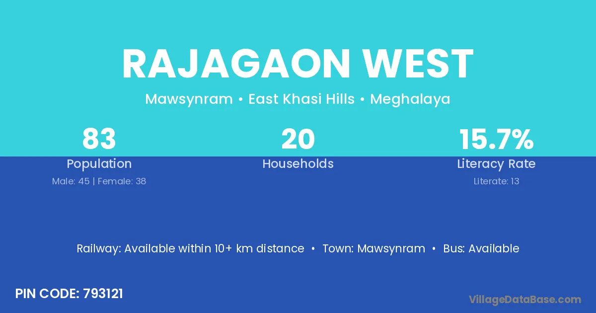 Mawsynram is the nearest town to Rajagaon West village for major economic activities