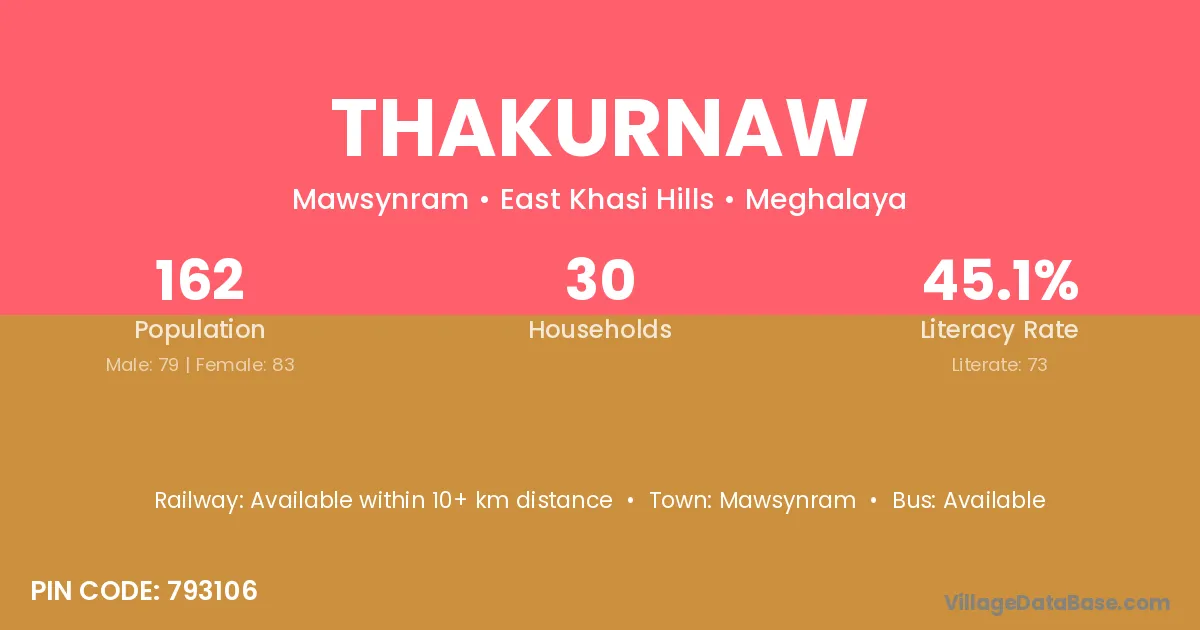 Mawsynram is the nearest town to Thakurnaw village for major economic activities
