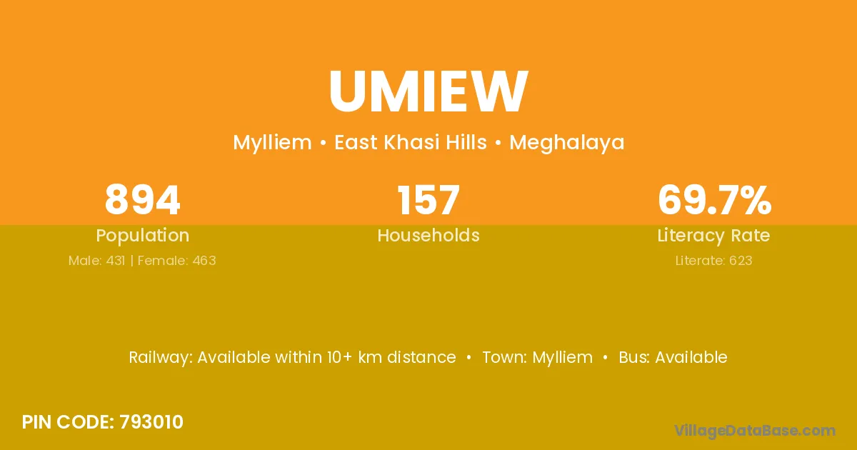 Umiew village has a total population of 894 people, of which 431 are males and 463 are females.