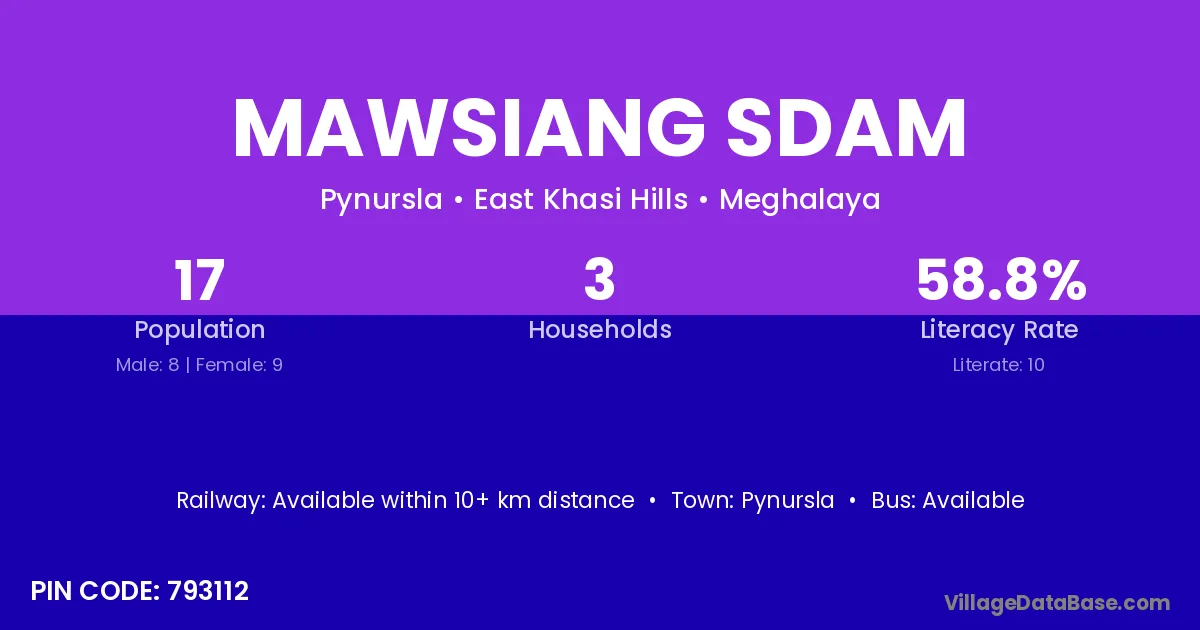 There are approximately 3 households in Mawsiang Sdam village.