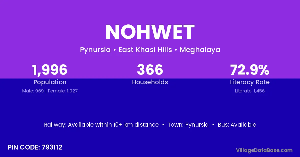 Pynursla is the nearest town to Nohwet village for major economic activities