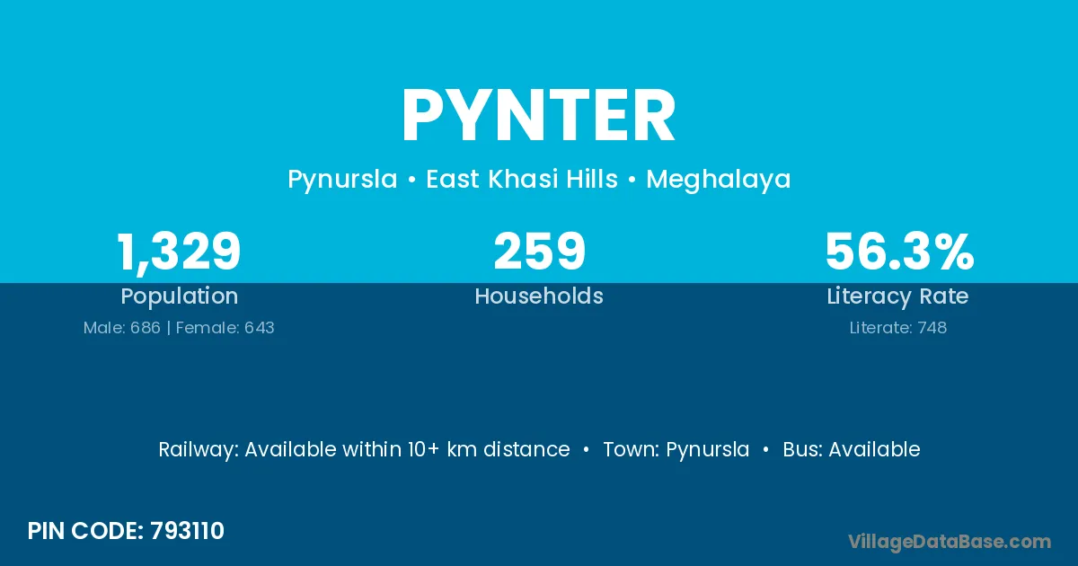 Pynursla is the nearest town to Pynter village for major economic activities
