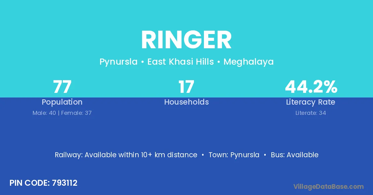According to Census 2011 information, the village code of Ringer village is 793112.