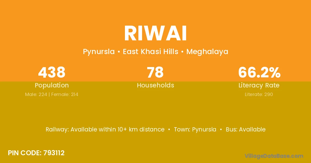 Riwai village has a total population of 438 people, of which 224 are males and 214 are females.