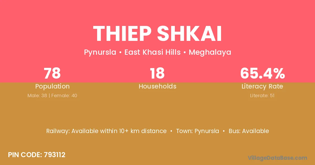 Pynursla is the nearest town to Thiep Shkai village for major economic activities