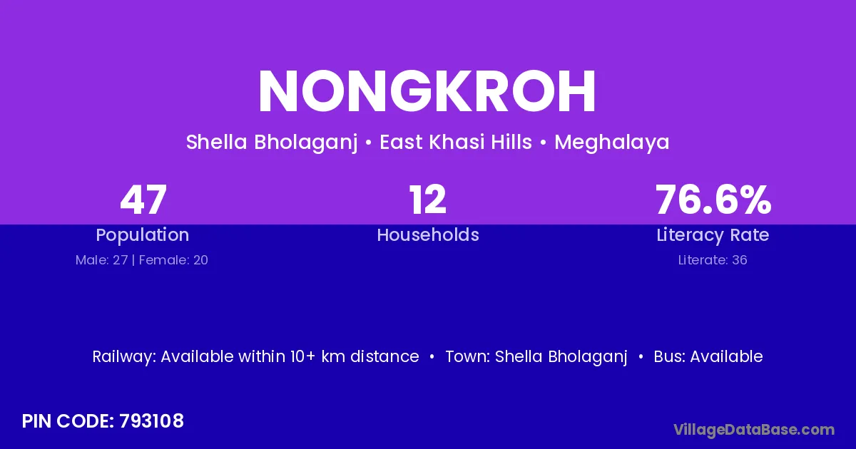 Shella Bholaganj is the nearest town to Nongkroh village for major economic activities