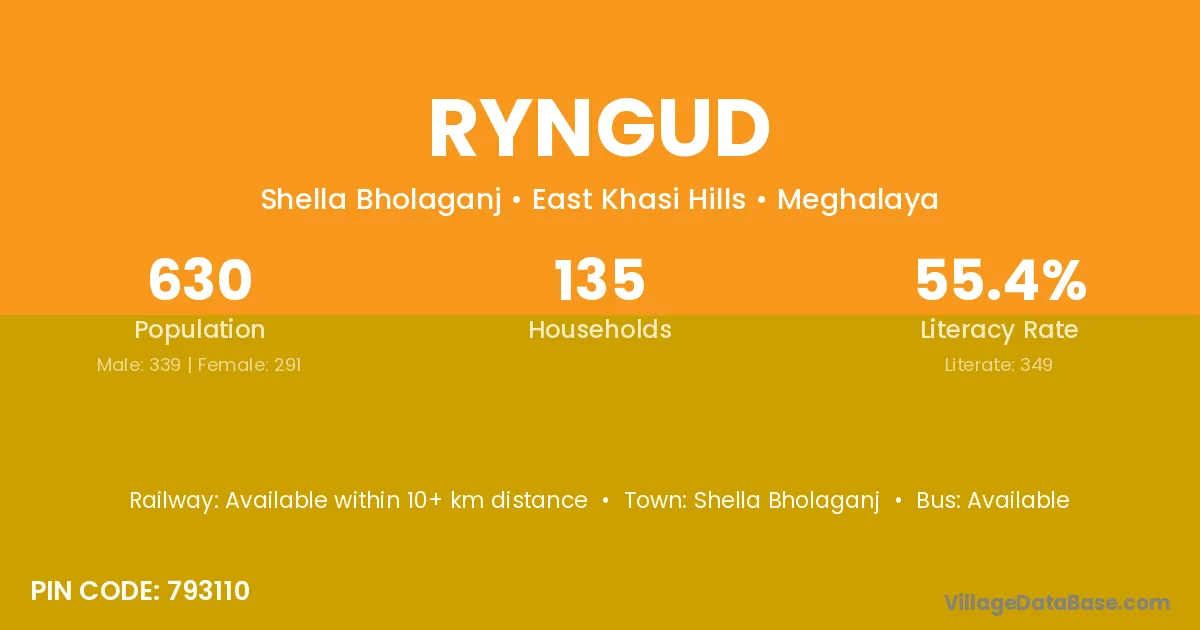 Shella Bholaganj is the nearest town to Ryngud village for major economic activities