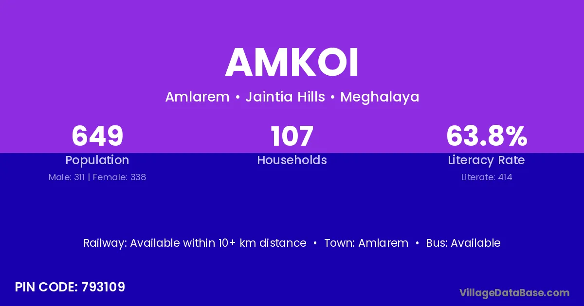 According to Census 2011 information, the village code of Amkoi village is 793109.