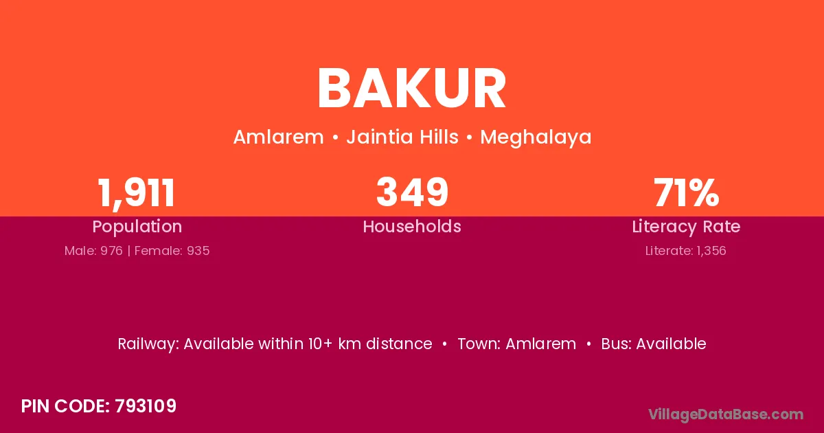 According to Census 2011 information, the village code of Bakur village is 793109.