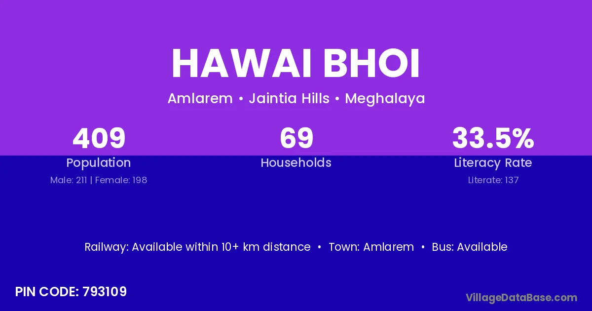 Amlarem is the nearest town to Hawai Bhoi village for major economic activities