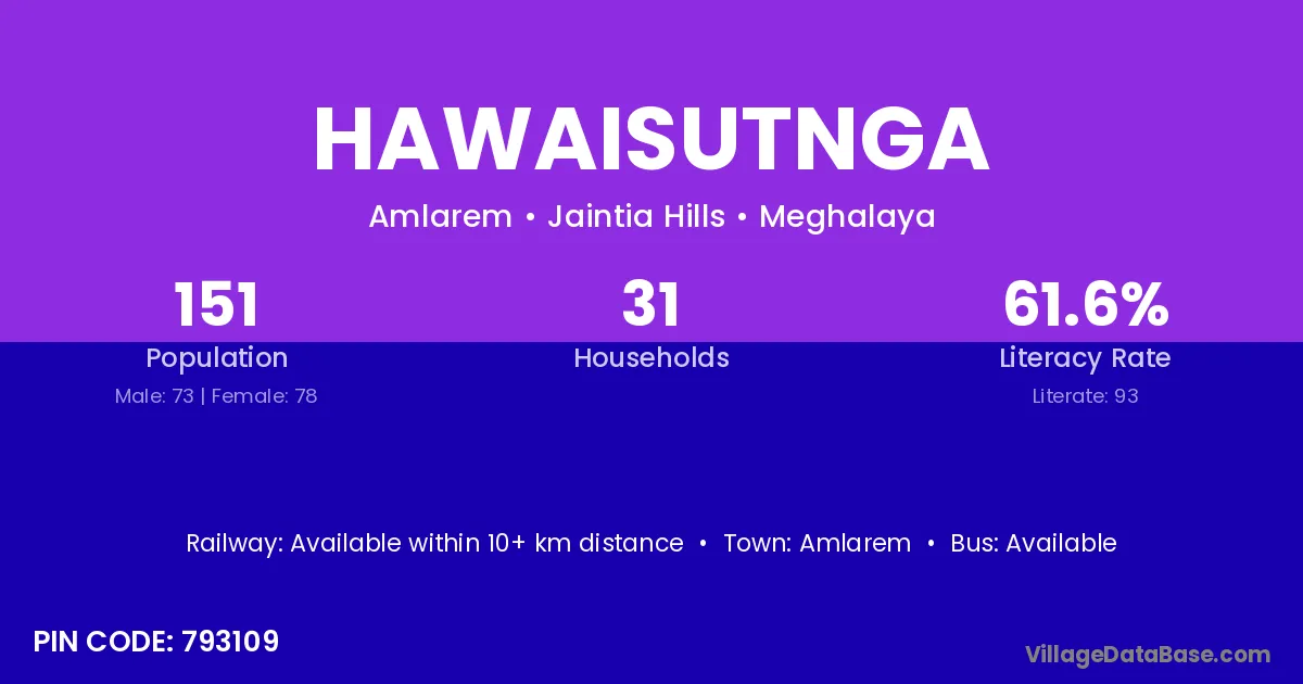 Amlarem is the nearest town to Hawaisutnga village for major economic activities