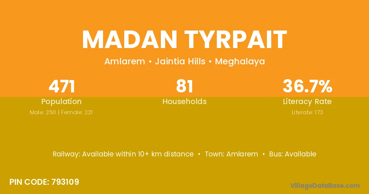 Amlarem is the nearest town to Madan Tyrpait village for major economic activities