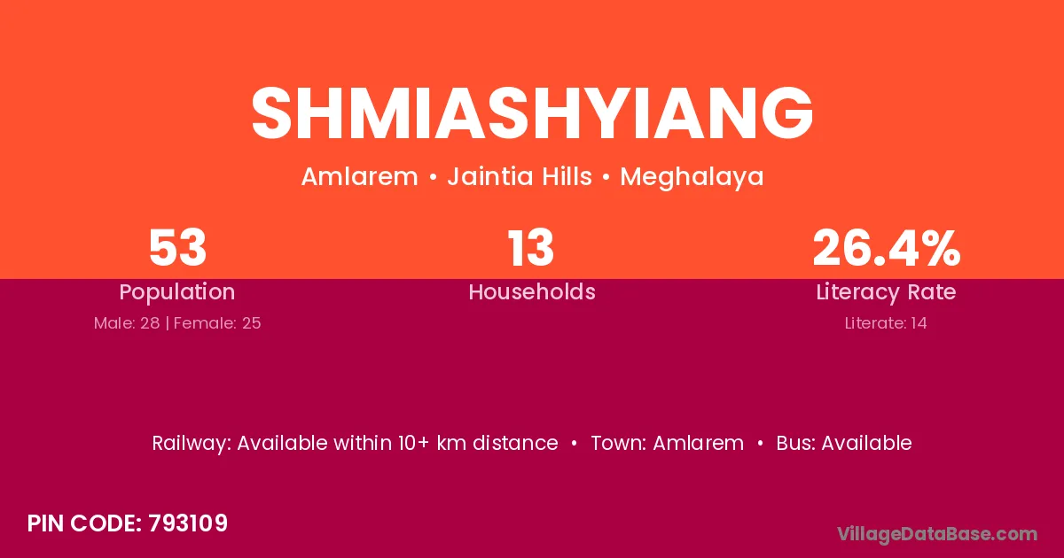 According to Census 2011 information, the village code of Shmiashyiang village is 793109.