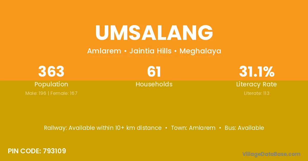 Umsalang village has a total population of 363 people, of which 196 are males and 167 are females.