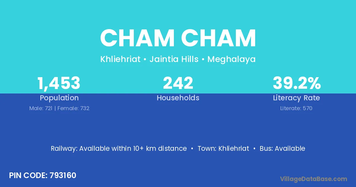 According to Census 2011 information, the village code of Cham Cham village is 793160.
