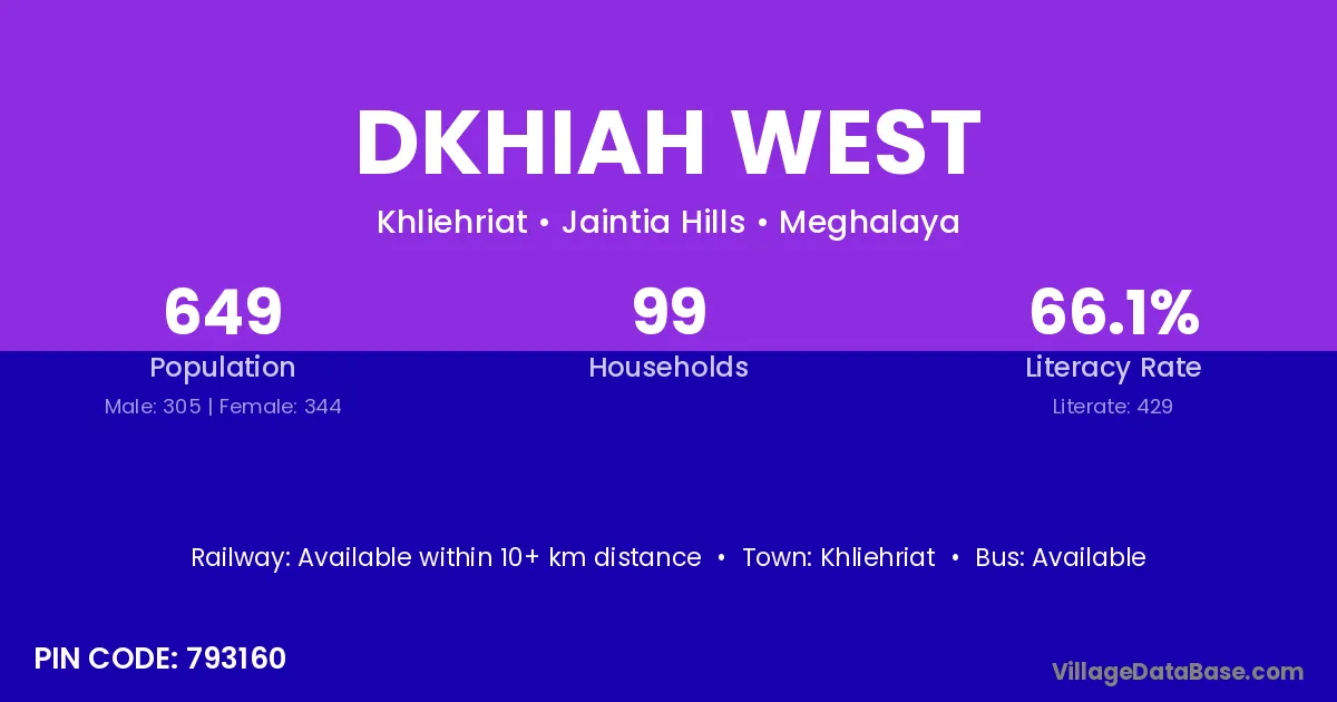 Khliehriat is the nearest town to Dkhiah West village for major economic activities