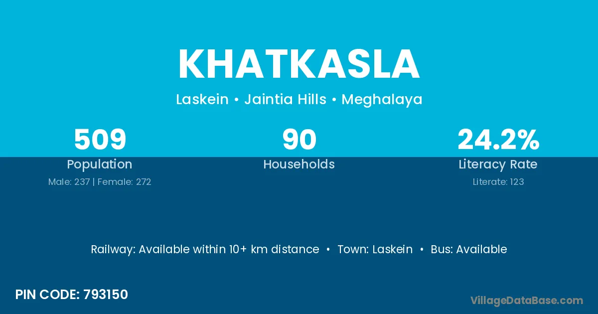 Khatkasla village is located in the Laskein Subdivision of the Jaintia Hills district in Meghalaya .